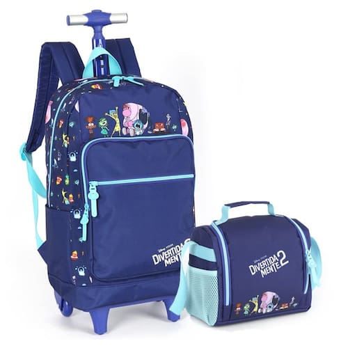 Mochila escolar com rodinhas: Divertidamente 2 Material: Poliéster de alta durabilidade Dimensões: 55 x 33 x 20 cm Fechamento: Zíper resistente Rodinhas: 2 rodinhas para facilitar o transporte Alças: Ajustáveis e acolchoadas Design: Estampa temática do filme "Divertidamente"