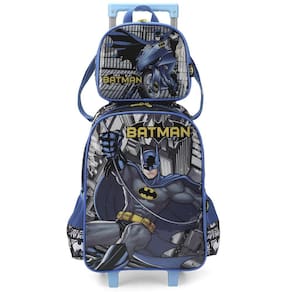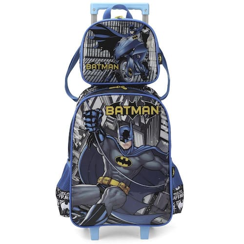 KIT MOCHILA DE RODINHAS E LANCHEIRA LUXCEL BATMAN