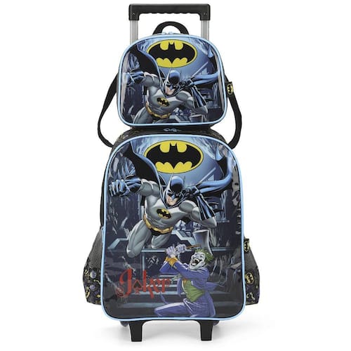 KIT MOCHILA DE RODINHAS E LANCHEIRA LUXCEL BATMAN