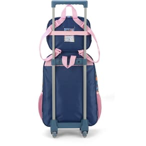 Kit mochila de rodinhas com bolsos laterias em tela com elástico, alças de costas espumadas e reguláveis, silk frontal, bolso frontal com zíper, alça de mão. Lancheira estampada com alça de costas e alça de mão, além de etiquetas personalizadas.
