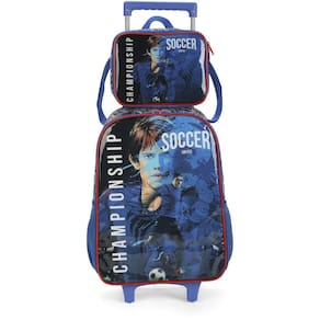 KIT MOCHILA DE RODINHAS E LANCHEIRA LUXCEL FUTEBOL