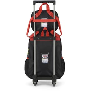 Kit mochila de rodinhas com bolsos laterias em tela com elástico, alças de costas espumadas e reguláveis, silk frontal, bolso frontal com zíper, alça de mão. Lancheira estampada com alça de costas e alça de mão, além de etiquetas personalizadas.