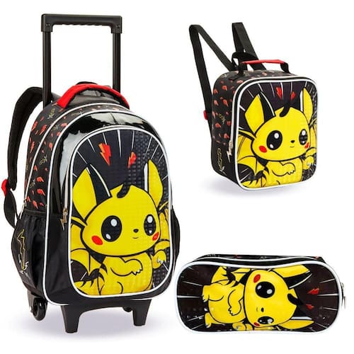 - 1 Mochila de Rodinhas Menino Infantil Raio DENLEX 1 Lancheira Térmica Menino Infantil Raio DENLEX 1 Estojo Duplo Menino Infantil Raio DENLEX