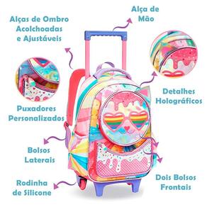 Kit de Mochila de Rodinha Infantil com Lancheira e Estojo - Aventura Arco-Íris do Gatinho de Óculos Faça da jornada escolar uma experiência mágica e organizada com nosso encantador Kit de Mochila de Rodinha Infantil. Projetado especialmente para os pequenos aventureiros, este conjunto cativante oferece não apenas funcionalidade, mas também um toque de magia e estilo. Mochila de Rodinha: Deixe a diversão começar com alças acolchoadas que garantem o conforto durante todo o dia e rodinhas de silicone suaves para deslizar suavemente pelo corredor da escola. O identificador nas costas torna fácil encontrar a mochila no meio da animação, enquanto o compartimento principal espaçoso e o bolso frontal com zíper garantem espaço suficiente para livros e itens essenciais. Bolsos laterais são perfeitos para manter a garrafinha sempre à mão. Os puxadores de zíper personalizados em forma de cup cake são um convite para a alegria em cada abertura. Lancheira: Mantenha as energias altas com a lancheira térmica que mantém os alimentos fresquinhos. Alças ajustáveis garantem o ajuste perfeito para os ombros pequenos. O rosto adorável do gatinho de óculos em um fundo holográfico transforma cada pausa para o lanche em uma experiência única. Estojo: Seja organizado desde o início com o estojo de dois compartimentos. Perfeito para lápis de cor, borrachas e outros itens essenciais, o estojo mantém tudo no lugar. Todo o kit é uma explosão de cores do arco-íris, proporcionando não apenas praticidade, mas também um toque de alegria e personalidade. Prepare-se para uma jornada escolar cheia de diversão com nosso Kit de Mochila de Rodinha Infantil, Lancheira e Estojo - onde a magia encontra a organização Marca: Não Informado