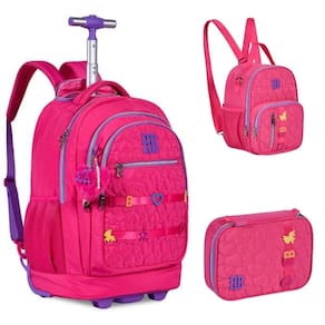 Kit Mochila de Rodinhas Oficial Rebecca Bonbon RB24538 Rosa Kit Mochila de Rodinhas Oficial Rebecca Bonbon RB24538 Rosa Toda majestade e glamour da nossa Bulldog Francesa estão expressas na nova coleção que chegou para deixar as It girls, de uma vez por todas, nas principais tendências da moda. Confeccionadas em material soft texturizado com matelassê personalizado, cadarço acetinado com passadores que se movem. Mochilas Com chaveiro de pompom de coração, mascote em plástico vazado e miçangas. Acompanha chaveiro exclusivo Essa linda mochila de rodinhas com 19, pode ser Utilizado para escola ou para pequenas viagens, pois seu tamanho é ideal para ir à bordo como bagagem de mão. A lancheira também pode ser Utilizado como frasqueira MOCHILA DE RODINHAS - Confeccionada em material soft texturizado com matelassê personalizado, etiqueta de PVC com metal de RB. - Mochilas com cadarço acetinado com passadores que se movem no painel frontal. - O famoso chaveiro de pompom vem em forma de coração nesta Coleção. - Os puxadores dos zíperes são personalizados. - Possui compartimento para notebook, duas divisões com bolsos e fechamentos em zíper independentes, bolso frontal e bolsos laterais. - Alças e costas acolchoadas para maior conforto. - Possui alça de mão reforçada e um compartimento traseiro com fechamento em zíper para guardar as alças de costas. - Seu puxador é de modelo de haste única, firme e bem resistente. - Rodinhas na parte traseira, com apoio frontal. - Na parte traseira, ao abrir o compartimento para usar a mochila nas costas, acompanha um protetor para as rodinhas. - Tamanho aproximado sem levantar a haste: 58cm altura x 39cm largura x 23cm profundidade LANCHEIRA TÉRMICA - Confeccionada em material soft com matelassê e etiqueta de metal personalizada. - Possui forro térmico, alça de mão, alças longas reguláveis para usar a tiracolo, alças de costas reguláveis estilo mochila e amplo espaço para levar seus lanches. - Possui um bolso amplo principal e um bolso frontal, ambos térmicos e com fechamento por zíper. ESTOJO BOX - Confeccionados em material soft com matelassê e etiqueta de metal personalizada, esse estojo box tem fechamento em zíper e lindos puxadores personalizados em metal - Possui compartimento interno com zíper separado para miudezas, elásticos para prender 36 lápis e amplo espaço para outros lápis e material diverso. - Esse estojo tem um espaço enorme para caber todo o material muito organizado - tamanho aproximado: 22 x 14 x 6 cm Informação adicional Marca: Clio Cor: ROSA Conteúdo do KIT: 01 mochila de rodinhas, 01 lancheira térmica e 01 estojo box de 90 dias para defeitos de fabricação. PRODUTO OFICIAL LICENCIADO ATENÇÃO: as tonalidades das cores do produto podem sofrer variações de percepção, de acordo com a tela do celular ou monitor, e podem variar de acordo com o lote de fabricação. Marca: Não Informado Ean: 7893165309926
