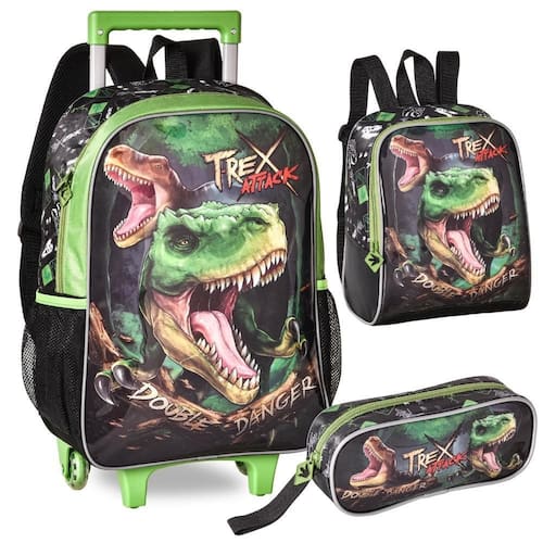 Kit Mochila De Rodinhas T-REX ATTACK Verde Clio TX3460K Kit Mochila De Rodinhas T-REX ATTACK Verde Clio TX3460K