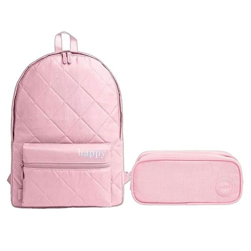 Kit Mochila e Estojo Escolar Infantil Duplo Happy Rosa - Tilibra
