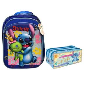 Kit Mochila e Estojo Escolar Infantil Triplo Stitch Azul - DAC
