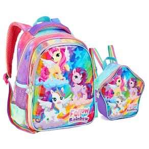 Mochila -Medidas:33,5cm x 24cm x 13cm -Puxadores Personalizados -Estampa Exclusiva -Bolsos Laterais Porta Garrafa -Detalhe Com Glitter -Identificador No Verso -Duas Divisórias -100% Poliéster 100% Policloreto de Vinila