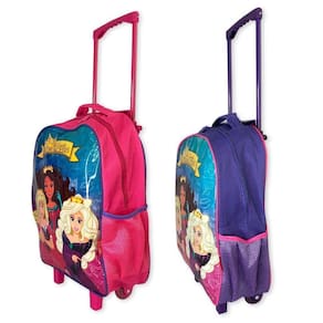 Kit Mochila Escolar com Rodinha 3 Peças Princesas Rosa/Roxo Kit Mochila Infantil com 3 Peças Princesas Rosa / Roxo ===================================== Esse kit é perfeito para atender todas as necessidades da criança. Vem com uma mochila de rodinhas com compartimento principal espaçoso ideal para acomodar os livros, cadernos e materiais escolares no geral e mais dois bolsos laterais de redinha para garrafas. Vem com uma lancheira térmica com espaço suficiente para levar todo lanchinho da criança e mantê-los frescos, tem alça para ser carregada na mão ou no ombro e também vem com alça para encaixe na mochila. Além disso, vem com um estojo para acomodar todos os lápis de cor e canetinhas. ===================================== Contém: 01 Mochila 01 Lancheira 01 Estojo Especificações: - Material: Poliéster - Medida Mochila: 41cm x 31cm x 12cm - Medida Lancheira: 18cm x 22cm x 9cm - Medida Estojo: 23cm x 7cm - Capacidade Mochila: 15 Litros - Com Rodinha: Sim - Peso: 800 gramas - Cor: Rosa ou Roxo enviado de forma aleatória, conforme - Estampa: Princesas CUIDADOS: - Guarde-a em um local arejado - Para a limpeza utilize apenas pano úmido e sabão neutro - Não imergir água - Não utilizar componentes químicos - Evite colocar excesso de peso - Evite dobrar para que a estampa permaneça nova ===================================== Devido à diferença entre monitores e iluminação diferentes, pode haver variação na tonalidade apresentada no anúncio. Medidas muito aproximadas. Marca: Não Informado
