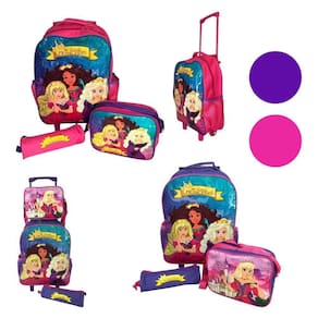 Kit Mochila Escolar Com Rodinha 3 Peças Princesas Rosa/Roxo