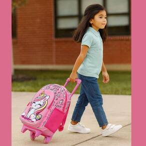Kit mochila escolar creche unicórnio carrinho rodinha menina
