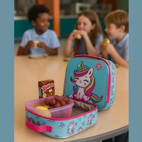 A lancheira é produzida em poliéster e possui forro térmico na parte interna, muito útil para manter a temperatura dos lanches durante uma manhã ou tarde na escola.