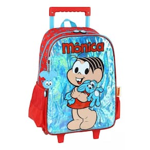 Contém: 01 un - mochila de rodinhas monica azul - luxcel 01 un - lancheira térmica monica azul - luxcel