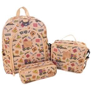 Kit mochila escolar infantil completo menina menino bolsa resistente com lancheira e estojo de 2 compartimentos - miellu Estampa: trator Kit mochila infantil