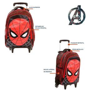 Kit Mochila Escolar Infantil Homem Aranha Marvel de Rodinhas, acompanha lancheira e estojo. Agora você pode levar sua mochila do Homem Aranha no seu dia a dia ou acompanhar você na escola. Possui alça de mão reforçada. Sua abertura maior se dá por zíper com puxador. Na parte de dentro possui amplo espaço para guardar diversos materiais como cadernos grandes, livros e estojos. Na parte da frente, possui bolso com zíper para guardar pertences de menor tamanho, e bolsos laterais.Características: Especificações: - Alça Superior - Estampa no Bolso Frontal - Puxador Retrátil- Zíper Personalizado- Bolso Lateral de Redinha Medidas do Estojo:- Altura: 10cm- Comprimento: 23cm Medidas da Lancheira:- Altura: 22cm- Largura: 20cm Medidas da Mochila: - Altura: 41cm- Largura: 15cm- Comprimento: 29cmDúvidas Frequentes:1. A mochila possui rodinhas em siliconeR. Sim, ela possui rodinhas em silicone transparente 2. Ela possui alça retrátilR. Sim, ela possui alça retrátil para ocupar menos espaço. 3. Ela possui quantas divisõesR. Ela possui 02 divisões para guardar suas coisas. 4. Qual o material da mochilaR. Ela é feita em poliéster e plástico. TagsMochila, escola, escolar, meninos, infantil, rodinha, personagem, desenho, heróis, material, spider man, marvel, vingadores, avengers, kit. Marca: Toys 2U