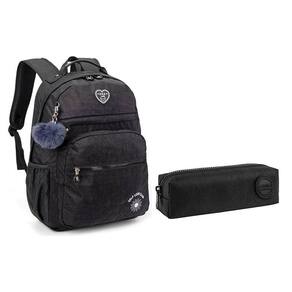 Kit Mochila Escolar Infantil KK24M14PT e Estojo Académie Preto - Kika