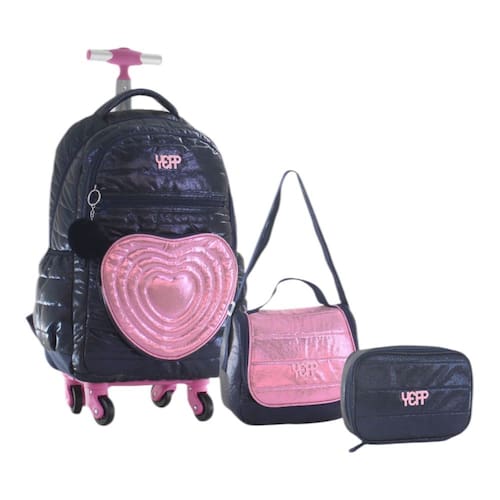 METALIZADISSIMA!! ESSA MOCHILA DE RODINHA JUNTOU O METALIZADO QUE A GENTE AMA E UMA MODELAGEM PERFEITA QUE CABE TODO O MATERIAL ESCOLAR! ELA POSSUI PUXADORES PERSONALIZADOS, BOLSOS FRONTAIS, BOLSOS LATERAIS COM ZÍPER, CARRINHO EMBUTIDO COM DOIS NÍVEIS DE EXPANSÃO E BOTÃO DE TRAVA. O CARRINHO TEM 4 RODAS COM GIRO EM 360?. MEDIDAS: 55cm x 34cm x 22cm