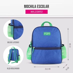 Mochila: Comprimento: 26,5cm x Largura: 10cm x Altura: 32cm