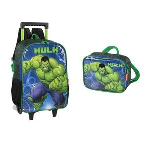 Kit Mochila Escolar Rodinha Lancheira Térmica Hulk +