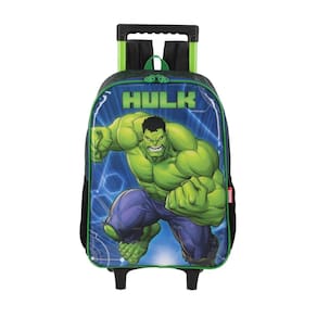 A Mochila Grande com Bolso Hulk Produzida em poliéster, material muito resistente e painel frontal em PVC, que facilita a limpeza do produto. Possui alça de costas espumadas, bolso frontal com puxador de zíper personalizado, alça de mão, bolsos laterais em redinha com elástico para deixar seus itens prediletos sempre à mão e identificador no verso para colocar seu nome.