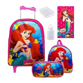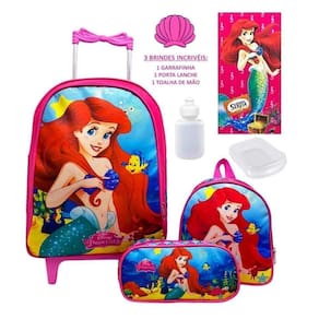 Kit Mochila Feminina Infantil Rodinhas Pequena Sereia