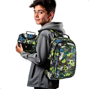 Além disso, a lancheira contém 2 compartimentos, sendo 1 com espaço térmico para manter os lanches fresquinhos. Possui alça de mão e alça transversal ajustável, oferecendo praticidade. Sendo a combinação perfeita para deixar a rotina do a seu ua filho a mais organizada