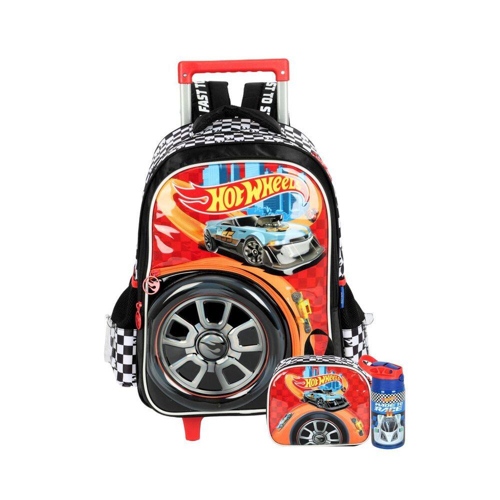 Kit Mochila Com Rodas + Lancheira Infantil Hot Wheels