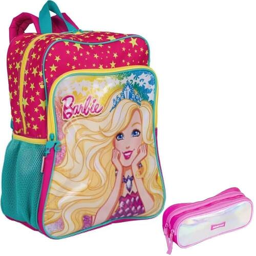 Kit Mochila Infantil Meninas Escolar Barbie Princesa Costas Tamanho Grande Com Estojo Duplo Holográfico