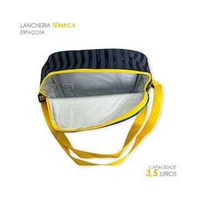 Vem com uma lancheira térmica com espaço suficiente para levar todo lanchinho da criança e mantê-los frescos, tem alça para ser carregada na mão ou no ombro e também vem com alça para encaixe na mochila.