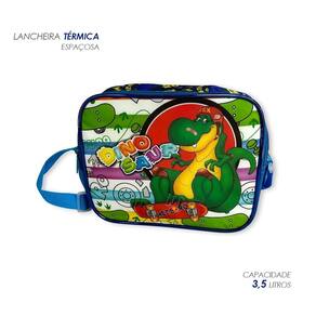 Mochila de rodinhas com compartimento principal espaçoso para livros e materiais escolares Dois bolsos laterais em redinha para garrafas, garantindo praticidade Lancheira térmica com espaço ideal para manter o lanchinho fresco Alças versáteis para transporte: mão, ombro ou encaixe na mochila Estojo para organizar lápis de cor e canetinhas de forma prática Design divertido com estampa de dinossauro, atraente para as crianças