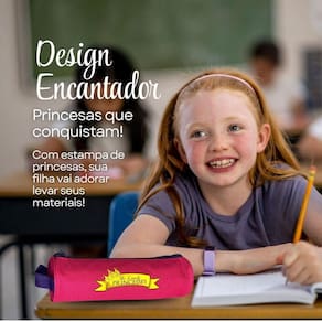 Kit Mochila Infantil Escolar com 3 Peças Princesas Rosa/Roxo -