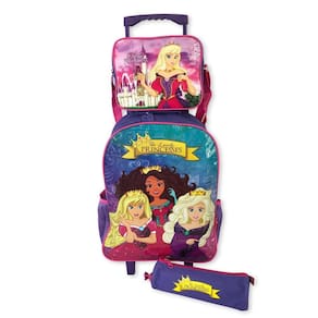 Kit Mochila Infantil Escolar com 3 peças Princesas Roxa Kit Mochila de Rodinhas - O companheiro perfeito para a escola