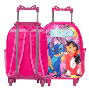 Kit Mochila Escolar Infantil Stitch Rodinhas, acompanha lancheira e estojo. Possui alça de mão reforçada. Agora você pode levar sua mochila no seu dia a dia ou acompanhar você na escola. Sua abertura maior se dá por zíper com puxador. Na parte de dentro possui amplo espaço para a guardar diversos materiais como cadernos, livros e estojos. Na parte da frente, possui bolso com zíper para a guardar pertences de menor tamanho e bolsos laterais.