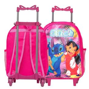 Kit Mochila Escolar Infantil Stitch Rodinhas, acompanha lancheira e estojo. Possui alça de mão reforçada. Agora você pode levar sua mochila no seu dia a dia ou acompanhar você na escola. Sua abertura maior se dá por zíper com puxador. Na parte de dentro possui amplo espaço para a guardar diversos materiais como cadernos, livros e estojos. Na parte da frente, possui bolso com zíper para a guardar pertences de menor tamanho e bolsos laterais.