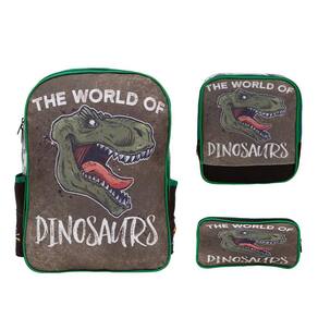 Kit Mochila Escolar Infantil Dinossauro, acompanha lancheira e estojo. Possui alça de mão reforçada. Agora você pode levar sua mochila no seu dia a dia ou acompanhar você na escola. Sua abertura maior se dá por zíper com puxador. Na parte de dentro possui amplo espaço para a guardar diversos materiais como cadernos, livros e estojos. Na parte da frente, possui bolso com zíper para a guardar pertences de menor tamanho e bolsos laterais.