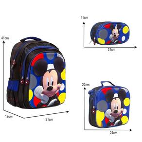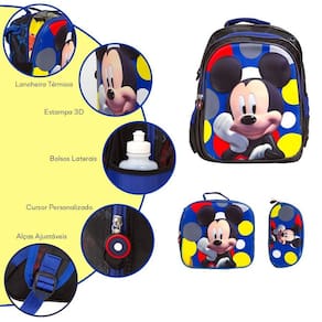 Kit Mochila Escolar Infantil Mickey, acompanha lancheira e estojo. Possui alça de mão reforçada. Agora você pode levar sua mochila no seu dia a dia ou acompanhar você na escola. Sua abertura maior se dá por zíper com puxador. Na parte de dentro possui amplo espaço para a guardar diversos materiais como cadernos, livros e estojos. Na parte da frente, possui bolso com zíper para a guardar pertences de menor tamanho e bolsos laterais.