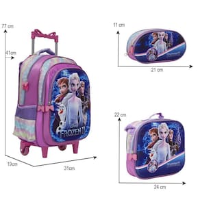 Kit Mochila Escolar Infantil Frozen Rodinhas, acompanha lancheira e estojo. Possui alça de mão reforçada. Agora você pode levar sua mochila no seu dia a dia ou acompanhar você na escola. Sua abertura maior se dá por zíper com puxador. Na parte de dentro possui amplo espaço para a guardar diversos materiais como cadernos, livros e estojos. Na parte da frente, possui bolso com zíper para a guardar pertences de menor tamanho e bolsos laterais.