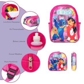Kit Mochila Escolar Infantil Stitch, acompanha lancheira e estojo. Possui alça de mão reforçada. Agora você pode levar sua mochila no seu dia a dia ou acompanhar você na escola. Sua abertura maior se dá por zíper com puxador. Na parte de dentro possui amplo espaço para a guardar diversos materiais como cadernos, livros e estojos. Na parte da frente, possui bolso com zíper para a guardar pertences de menor tamanho e bolsos laterais.