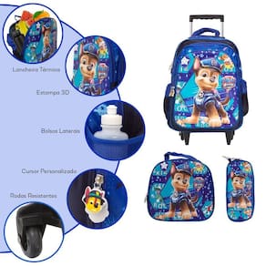 Kit Mochila Infantil Menino Patrulha Canina 3D Com Rodinha