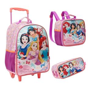 Kit Mochila Infantil Com rodinhas escolar + Lancheira + estojo triplo Princesas Cor: Lilas Tamanho: único Genero: unissex Kit Mochila Infantil Com rodinhas escolar + Lancheira + estojo triplo Princesas