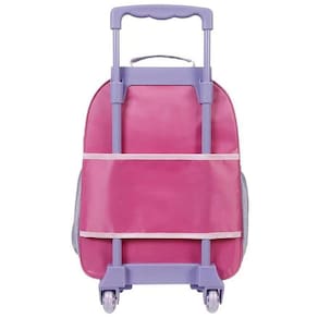 Mochila Dermiwill ideal para comportar materiais e todos os objetos necessários para a fase escolar, bolsos laterais em mesh para garrafinha, haste dupla e colorida, bolso frontal com zíper grande, rodinha de gel e etiquetas personalizadas. Lancheira versátil que pode ser levado à escola passeios, shopping, parques entre outros. Conta com alça de ombro regulável, elástico interno e atrás e etiquetas personalizadas.