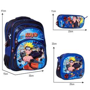 Kit Mochila Escolar Infantil Naruto, acompanha lancheira e estojo. Possui alça de mão reforçada. Agora você pode levar sua mochila no seu dia a dia ou acompanhar você na escola. Sua abertura maior se dá por zíper com puxador. Na parte de dentro possui amplo espaço para a guardar diversos materiais como cadernos, livros e estojos. Na parte da frente, possui bolso com zíper para a guardar pertences de menor tamanho e bolsos laterais.