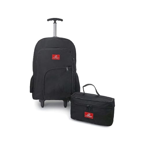 Kit mochila notebook 15,6 executiva rodinha com frasqueira Cor: Preto A mochila é um acessório imprescindível no dia a dia corrido tendo de carregar vários pertences e ainda tendo de transportar notebook hoje tão presente no trabalho e universidade, com bolsos e espaço exclusivo para o computador até 16 poderá transportar com segurança, organização e comodidade com puxador e rodinhas silenciosas não tendo que carregar o peso nas costas. Com amplo espaço interno, bolsos frontais e laterais para agua ou pequenos objetos com acesso rápido também tem as alças caso opte por carregá-la nas costas.