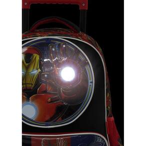Esse lindo kit escolar avengers e homem de ferro vai fazer sucesso entre a garotada. Esse modelo conta com 3 compartimentos e dois bolsos laterais para colocar a garrafa. Possui 4 rodinhas de silicone com led e giros 360º.