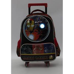 Esse lindo kit escolar avengers e homem de ferro vai fazer sucesso entre a garotada. Esse modelo conta com 3 compartimentos e dois bolsos laterais para colocar a garrafa. Possui 4 rodinhas de silicone com led e giros 360º.