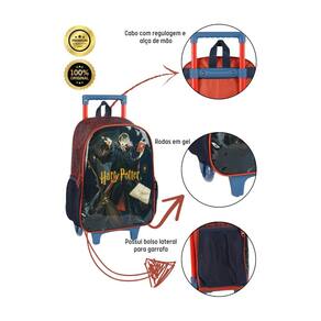 Mochila: Confeccionada em Poliéster Fechamento em zíper Puxadores personalizados Compartimentos espaçosos 2 bolsos laterais para garrafa Possui RODAS e ALÇA DE MÃO Design exclusivo Etiqueta de identificação na parte traseira Medidas aproximadas: Altura:40 cm Largura:30 cm Comprimento: 15 cm