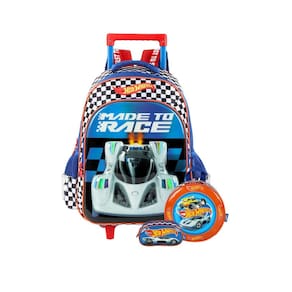 Kit Escolar Mochila com Rodas+Lancheira Térmica+Estojo Triplo Hot Wheels
