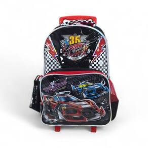 Kit Escolar Perfeito para Meninos - Mochila de Rodinhas, Lancheira e estojo duplo com estampa de carro. Deixe a volta às aulas ainda mais especial com este kit completo, funcional e encantador Mochila grande com Rodinhas Design colorido e bonito Rodinhas de silicone resistentes Alça retrátil ajustável Compartimentos amplos para caderno, agenda e estojo Medidas 17 20 L: 44 cm de altura x 30 largura x 15 cm comprimento/ lateral Material poliester CBFT9530 A Lancheira Térmica Material interno térmico mantém alimentos preservado Alça costa facilita o transporte Medidas: 25 cm altura x 19 cm largura x 14 cm comprimento/ lateral CBFT9530 B Estojo duplo Compartimento duplo com zípers medidas : 20 cm largura x 11,5 cm altura x 10 cm comprimento material : Poliester CBFT9530 C