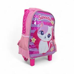 Kit Escolar Perfeito para Meninas - Mochila de Rodinhas, Lancheira e Bolsinha com estampa da gatinha mais charmosa. Deixe a volta às aulas ainda mais especial com este kit completo, funcional e encantador!